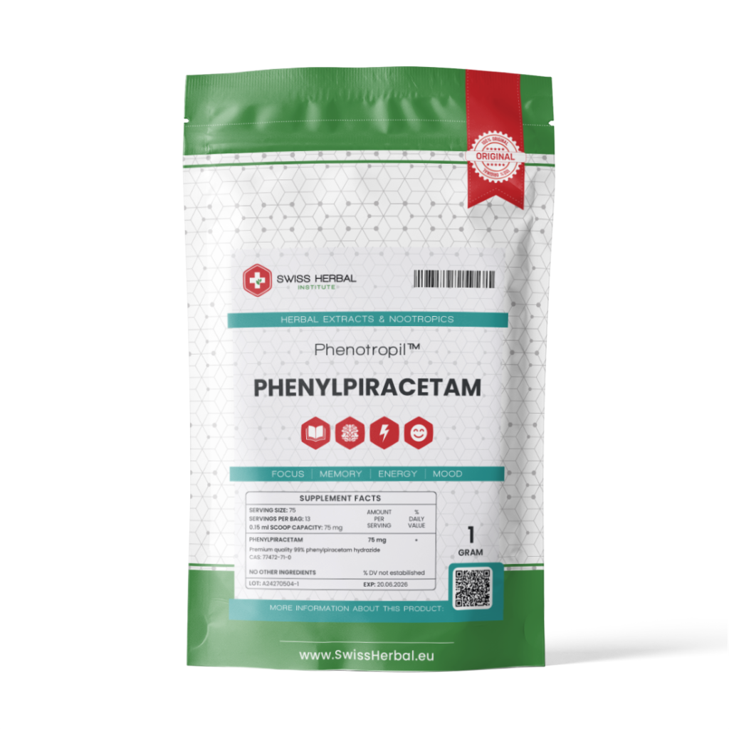 Biochemistry: Phenylpiracetam is an organic chemical compound that belongs to the group of racetams. As all substances from this family, its molecule contains a 2-pyrrolidone ring, which is a derivative of gamma-aminobutyric acid (GABA). Phenylpiracetam is the equivalent of piracetam, which differs in the presence of an additional phenyl group. Because of this structural difference it crosses the blood-brain barrier more effectively than piracetam. Phenylpiracetam is easily and quickly absorbed from the gastrointestinal tract. Its blood plasma density peaks around half an hour after administration. It isn’t metabolized in the liver and around 40% of its unchanged form is exerted in the urine. The remaining 60% is exerted in bile and sweat. This fat-soluble compound easily crosses the blood-brain barrier. It increases the concentration of nicotine receptors for acetylcholine and N-methyl-D-aspartate receptors for glutamate. Phenylpiracetam also contributes to the improvement of blood flow in blood vessels supplying our brain with nutrients and oxygen. In addition, it stimulates neuronal mitochondria (structures that are responsible for energy production in cells).
